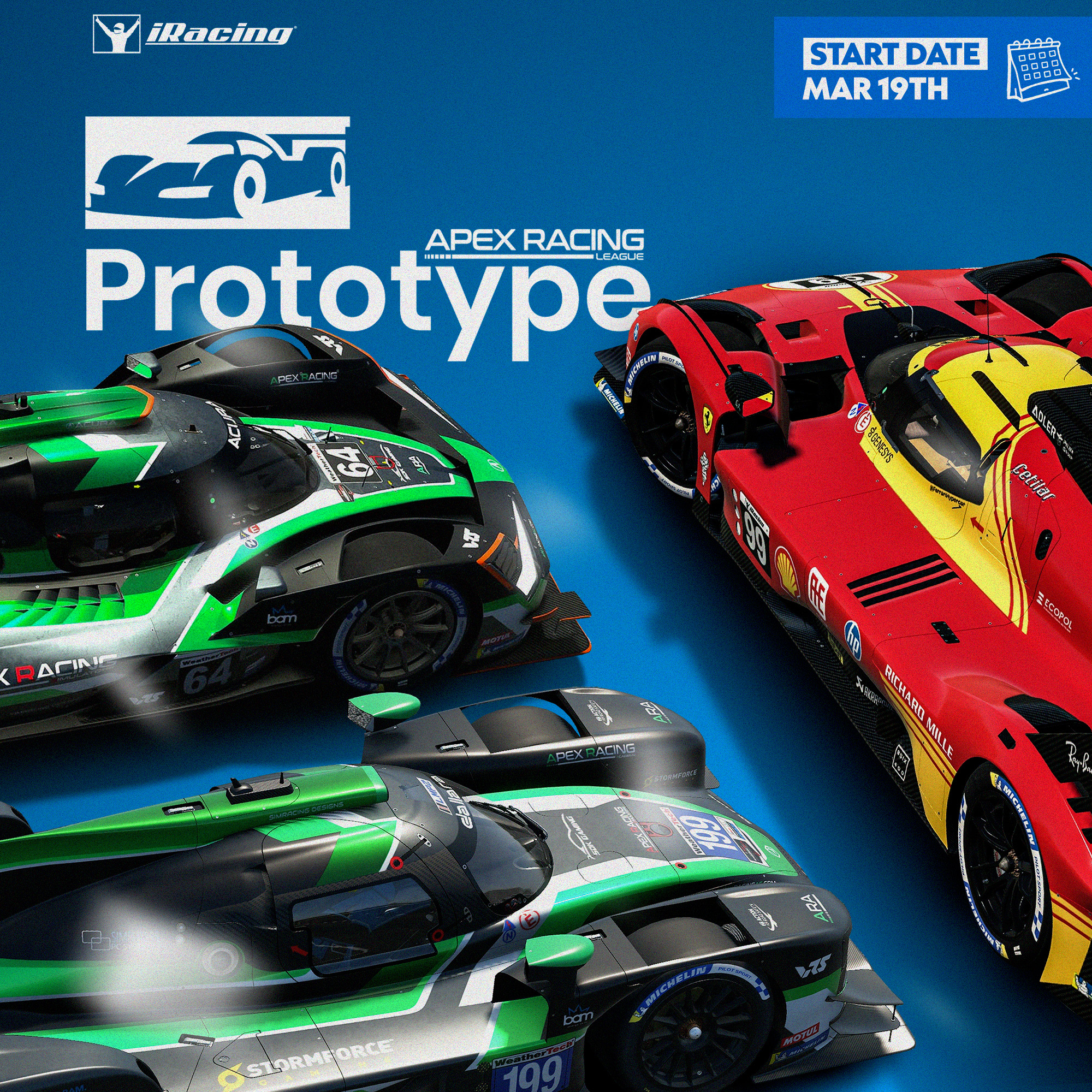 The Apex Racing League Prototype Championship is a 9 round series featuring GTP and LMP2 cars on iRacing. Drivers are entered into pro and am driver divisions to ensure everyone has similarly matched drivers to race against for a championship title. Races start at 20:10 UK Time on Thursdays and are broadcasted on the Apex Racing TV YouTube channel